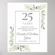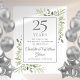 Con delicada vegetación de jardín campestre en acuarela suave, este diseño botánico chic para el 25 aniversario de boda se puede personalizar con la información de su aniversario especial en texto plateado elegante. Diseñado por Thisisnotme©