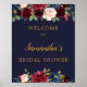 Letrero de bienvenida floral burdeos navy totalmente editable para despedida de soltera, boda, baby shower o cualquier ocasión, Edite usted mismo todas las fuentes y textos. Contacte conmigo para artículos coincidentes o para personalizar, Rosas Rosadas ©