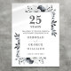 Con un elegante diseño floral plateado en acuarela, este diseño botánico chic para el 25 aniversario de bodas se puede personalizar con la información de su aniversario especial en texto plateado moderno. Diseñado por Thisisnotme©