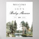 Este elegante letrero de bienvenida para baby shower con temática rústica de bosque y lago en acuarela puede ser personalizado con su información en tipografía moderna. Diseñado por Thisisnotme©