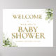 Un elegante letrero de bienvenida para baby shower con hermosas letras de vegetación dorada. Diseñado por Thisisnotme©