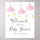 Con nubes rosadas y estrellas doradas en cuerdas, este letrero de bienvenida es perfecto para un baby shower especial. Diseñado por Thisisnotme©