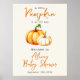 Esta moderna y elegante señal de bienvenida para baby shower con calabaza de acuarela puede ser personalizada con su información en tipografía elegante. Diseñada por Thisisnotme©
