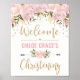 Póster Letrero de bienvenida para bautizo floral rosa cla