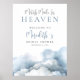 Señal de bienvenida para despedida de soltera "Match Made In Heaven". Salude a los invitados con esta señal simple y elegante que establece el tono para una celebración soñadora y romántica. “Match Made In Heaven” aparece en la parte superior en elegante caligrafía manuscrita, combinada con una fuente serif clásica para el nombre de la novia y “Bridal Shower” debajo, todo en un elegante tono gris y azul.
