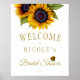 Plantilla moderna de bienvenida para despedida de soltera con flores, que incluye un ramo grande de girasoles amarillos dorados y una tipografía de oro falso con estilo. +++++++++++++++ ¡Fácil de personalizar con tus datos!