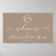 Un simple y elegante cartel de bienvenida para una despedida de soltera con un monograma de follaje de lámina falsa en grullo. Fácil de personalizar con tus detalles. Cartel de bienvenida para despedida de soltera moderno boho editable, invitación de boda con foto de coronas, personalizable, fuente manuscrita caligráfica, simple, elegante.