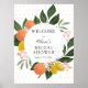 Bienvenidos invitados a su ducha de novia con este hermoso cartel, que cuenta con un marco circular rodeado de naranjas, limones, hojas y vegetación. Agregue el nombre de la invitada de honor, la fecha de la ducha y el texto de bienvenida personalizado utilizando los campos proporcionados.