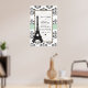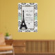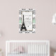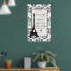 Elegantes y sofisticadas invitaciones de despedida de soltera al estilo parisino con un borde floral vintage antiguo de damasco en negro y blanco, un diseño con estampado de cinta en verde menta y jade y la Torre Eiffel. Diseñado por Chrissy H. Studios, LLC. Todos los derechos reservados.