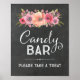 Letrero de cartel de barra de dulces para baby shower, despedida de soltera o boda en patrón rústico de acuarela floral y pizarra en tonos rosa y melocotón con texto de estilo letra a mano. Perfecto para una baby shower, boda, cumpleaños o despedida de soltera.
