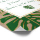 Póster de boda de hojas tropicales verdes y doradas “Sabemos que estarías aquí hoy si el cielo no estuviera tan lejos”. Muestra hermosas hojas de filodendro de hoja hendida (Monstera deliciosa) o planta de queso suizo y hojas de palma en verde con contorno dorado en papel rústico color beige. Su texto está en un marco blanco con contorno verde.