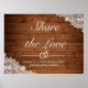 Póster Letrero de boda de madera rústica y encaje blanco