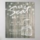 Cartel de Boda Elige un Asiento No un Lado - Elegantes Luces de Mason Jar y Luces de Cuerdas sobre Fondo de Madera Rústica.