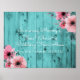 Madera rústica, letrero de boda conmemorativo en color turquesa - Floral rosa. Póster de recepción "En memoria de los seres queridos ausentes" para honrar a los seres queridos que faltan. Coincide con temas de boda campestres rústicos y tenemos invitaciones de boda turquesa a juego, libro de firmas de madera rústica y otros decorados de boda coordinados en nuestra tienda Zazzle.com/angela65. Fondo con aspecto de tablones de madera de granero turquesa rústica o madera de playa blanqueada. Dice 'En memoria de aquellos que nos observan desde arriba, siempre estarán con nosotros' en letra cursiva elegante y tipografías modernas. Flores rosadas y coral adornan las esquinas superiores e inferiores. Utilice el botón "Personalizar" si desea cambiar algo: texto, estilos de letra, tamaños, colores o ubicación. Complementa decoraciones de boda