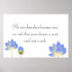 Póster Letrero de boda gris de flores de loto azul