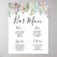 Letrero de menú de bar rústico para boda con diseño de vegetación en acuarela rústica y caligrafía moderna.