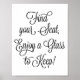 Letrero de boda moderno con letra de caligrafía caprichosa. Otros colores están disponibles. Encuentra tu asiento, disfruta de un vaso para guardar.