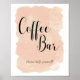 Este letrero de café para bodas, con su fondo de acuarela rosa suave y escritura caligráfica e itálica, es una forma hermosa de decorar la mesa del bar de café en la boda o la fiesta de compromiso.