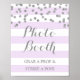 Letrero de cabina de fotos para baby shower, bridal shower, cumpleaños o boda en patrón de rayas lavanda claro y blanco con efecto de brillo plateado, por favor tenga en cuenta que plateado es solo efecto fotográfico. Perfecto para una baby shower, boda o bridal shower.