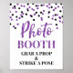 Letrero de cabina de fotos para baby shower, despedida de soltera o boda con un patrón de confeti morado y negro y letras estilo manuscrito. Perfecto para una baby shower, boda o despedida de soltera.
