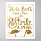 Póster Letrero de cabina de selfies de boda elegante dora