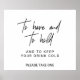 Este letrero de caligrafía caprichosa "para tener y mantener" es perfecto para una boda moderna. El diseño presenta tipografía elegante pero rústica para un aspecto minimalista simple. Los enfriadores coincidentes se venden por separado.