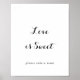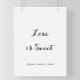 Este letrero de caligrafía moderna love is sweet es perfecto para una boda rústica o ducha de novia. El diseño simple y elegante presenta tipografía de guión clásica y elegante en negro y blanco.
