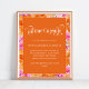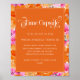 Crea un momento significativo y memorable con este vibrante letrero de cápsula del tiempo de baby shower que presenta arte floral rosa y naranja alegre, tonos cítricos cálidos y tipografía moderna elegante. Perfecto para una actividad de baby shower, celebración de verano para bebé o fiesta floral alegre para bebé, esta exhibición sincera invita a los invitados a compartir deseos, recuerdos y esperanzas futuras, combinando hermosamente con un estilo de evento colorido, femenino y memorable.