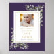 Una elegante celebración de la vida, letrero de servicio conmemorativo funerario que presenta follaje botánico de acuarela sobre un fondo púrpura. Diseñado por Thisisnotme©
