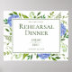 Póster Letrero de Cena de Ensayo Floral de Hortensias Azu