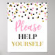 Letrero de sírvase usted mismo para baby shower, despedida de soltera, fiesta de cumpleaños o boda en un patrón de confeti rosa, negro y dorado.