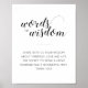 Este letrero de consejos de palabras de sabiduría elegantes presenta un estilo minimalista en blanco y negro con una mezcla de letra manuscrita y fuentes de bloque simples. Puede ser una excelente alternativa a un libro de invitados tradicional. Parte de la Colección Alejandra.