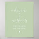 Este letrero de consejos y deseos presenta una fuente manuscrita con estilo y un diseño minimalista moderno con una combinación de colores verde pastel vibrante y blanco. Cambie fácilmente los colores y edite la mayoría de la redacción para satisfacer las necesidades de su ocasión. Este letrero es perfecto para su boda de primavera, verano y jardín, ducha de novia o ducha de parejas. Combínelo con otros artículos de la Colección LEAH para un look coherente.