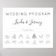 Elegante letrero de programa de boda en negro y blanco con iconos de boda y tipografía moderna. Este letrero de programa de ceremonia es totalmente personalizable, por lo que puedes cambiar el tamaño y orden de los iconos, todo el texto, colores y fondo para que se ajuste mejor a tu tema de boda.