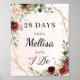 Póster Letrero de cuenta regresiva de boho borgoña floral