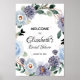 Corona floral elegante de flores y hojas moradas, perfecta para un letrero de bienvenida para la despedida de soltera de la futura novia. El tamaño predeterminado es 8 x 12, pero puedes cambiar el tamaño. Invitaciones COINCIDENTES y más en nuestra tienda.