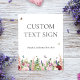 Femenino y moderno, este letrero de fiesta se puede personalizar para tu despedida de soltera. El diseño presenta un hermoso jardín de flores de acuarela rosadas y moradas, incluyendo rosas, tulipanes, lavanda y follaje de eucalipto con mariposas de colores brillantes y abejorros volando alrededor.