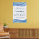 Este diseño elegante y refinado está pintado a mano en acuarela en tonos de azul claro, azul clásico y azul marino. El diseño abstracto se asemeja a las olas del océano, perfecto para una despedida de soltera con tema de playa, océano o náutico. Agregue fácilmente el nombre de la novia y la fecha del evento a este hermoso letrero de fiesta de 24x36.