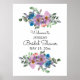 Púrpura ciruela, rosa rubor y floral de jardín azul en cartel / pancarta de bienvenida a la fiesta de despedida de soltera blanca