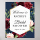 Póster de Letrero de Despedida de Soltera Floral Rosa Rojo Borgoña Azul.