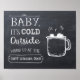 Anime a sus invitados a calentarse en la barra de cacao caliente. "Bebé hace frío afuera, caliéntate en la barra de cacao caliente". Ideal para una recepción de boda de invierno, ducha de novia, ducha de bebé o fiesta de vacaciones. Pizarra falsa con divertidas letras blancas a mano.