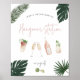 Crea una estación de alivio de resaca en el fin de semana de la despedida de soltera y termínala con este lindo letrero personalizado y enmarcable. Si te preguntas qué incluir en la estación de resaca de la despedida de soltera, piensa en analgésicos, agua, máscaras para los ojos, medicamentos para el malestar estomacal, paquetes de hidratación o mezcladores de bebidas, y más. Coloca todo en una cesta en la cocina o en la sala y remátalo con este elegante letrero personalizado que presenta delicadas ilustraciones de acuarela de hojas botánicas, monstera, cócteles y frutas en una suave paleta de colores de rosa, melocotón, marfil y verde.