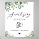 Póster de letrero de estación de sanitización de boda con hojas de eucalipto verde.
