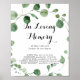 Este letrero de eucalipto en memoria con caligrafía es perfecto para una boda moderna o una despedida de soltera. El diseño presenta ramas y hojas de eucalipto botánico elegante dibujadas a mano con acuarela.