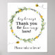 Letrero de favor con una guirnalda de acuarela de follaje y flores amarillas con abejas zumbando y las palabras "Hey Honey, gracias por ESTAR Aquí" en una escritura divertida.