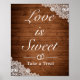 El amor es dulce, toma un regalo letrero de boda. Estilo rústico con fondo de tablones de madera y decoración de encaje blanco. Más artículos están disponibles en este estilo en nuestra tienda. Puede editar el diseño aún más, cambiar colores, fuentes y agregar texto adicional haciendo clic en el enlace "personalizar más".