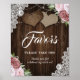 Póster Letrero de favor de boda floral rosa rústico