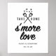 Diseño lindo de "Lleva a casa s'more love" con arte de malvaviscos asados en la parte superior, y el nombre de la pareja y la fecha abajo. Ideal para una mesa de favores de s'mores. El color de fondo es personalizable.