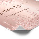 Un fondo metálico de oro rosa falso con gotas de brillo falsas, aspecto de pintura que gotea. Favores está escrito con un estilo de letra manuscrita moderna con florituras.