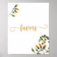 El letrero de favores de flor silvestre presenta caligrafía dorada falsa moderna, flores de acuarela y un fondo blanco. Este letrero también está disponible con la letra en negro. Ver la colección para productos coordinados.